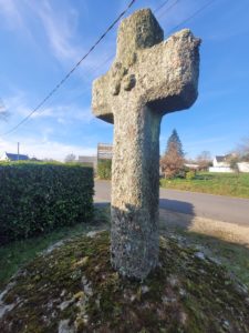 Ensemble remonté, soubassement en maçonnerie en pierre de taille et moellons; couronnement et socle en dalle épiasse circulaire; croix monolithe en granit. Croix de Malte sculpté en relief et les 5 plaies du Christ.